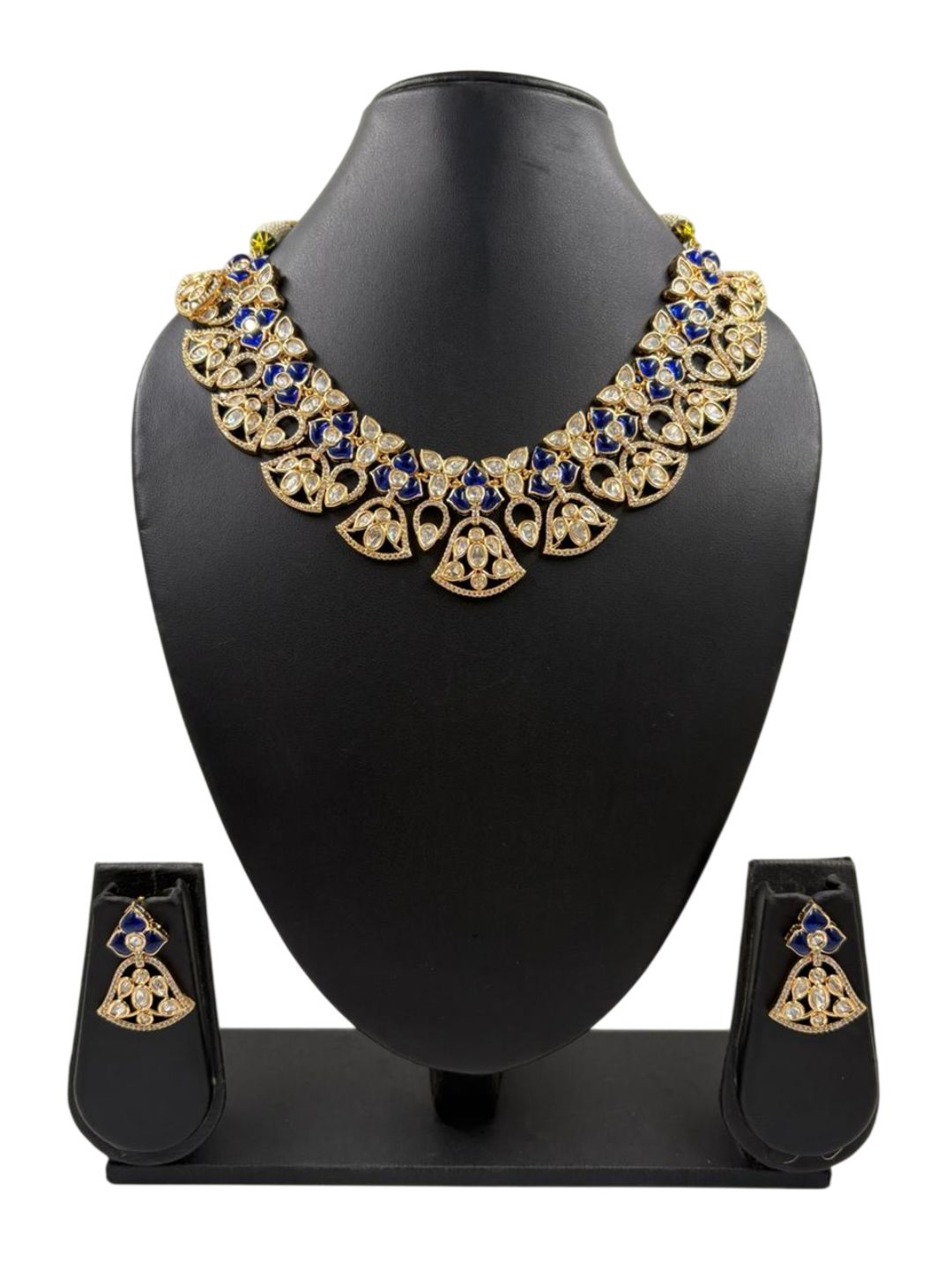 The premium-quality Kundan polki stones are skillfully set in a modern necklace design, making it perfect for bridesmaids, wedding guests, and cultural events. The matching earrings complete the set, adding a touch of regal charm. The stone detailing enhances its beauty, making it a must-have for women who love heritage jewelry with a modern touch.