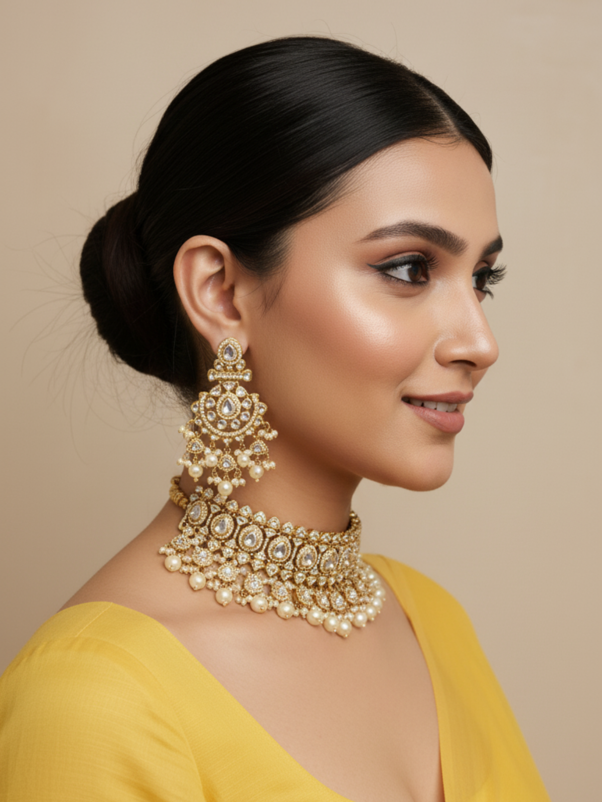 Finish: Premium Gold-Plated with Kundan & Pearl Embellishments