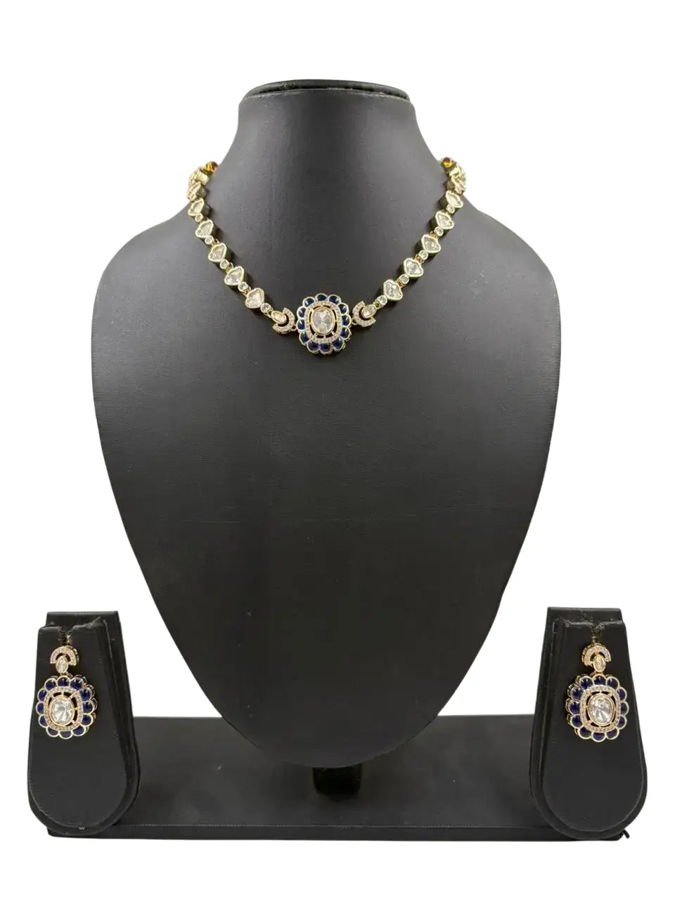 Radiate timeless elegance with this Simple Kundan Wedding Necklace Set  - Wedding and Festive Jewellery Sets, featuring a stunning floral design with Kundan stones , polki , AD stones and clear kundan crystals. Each petal is crafted with precision, encircling a sparkling centerpiece that exudes royal charm.