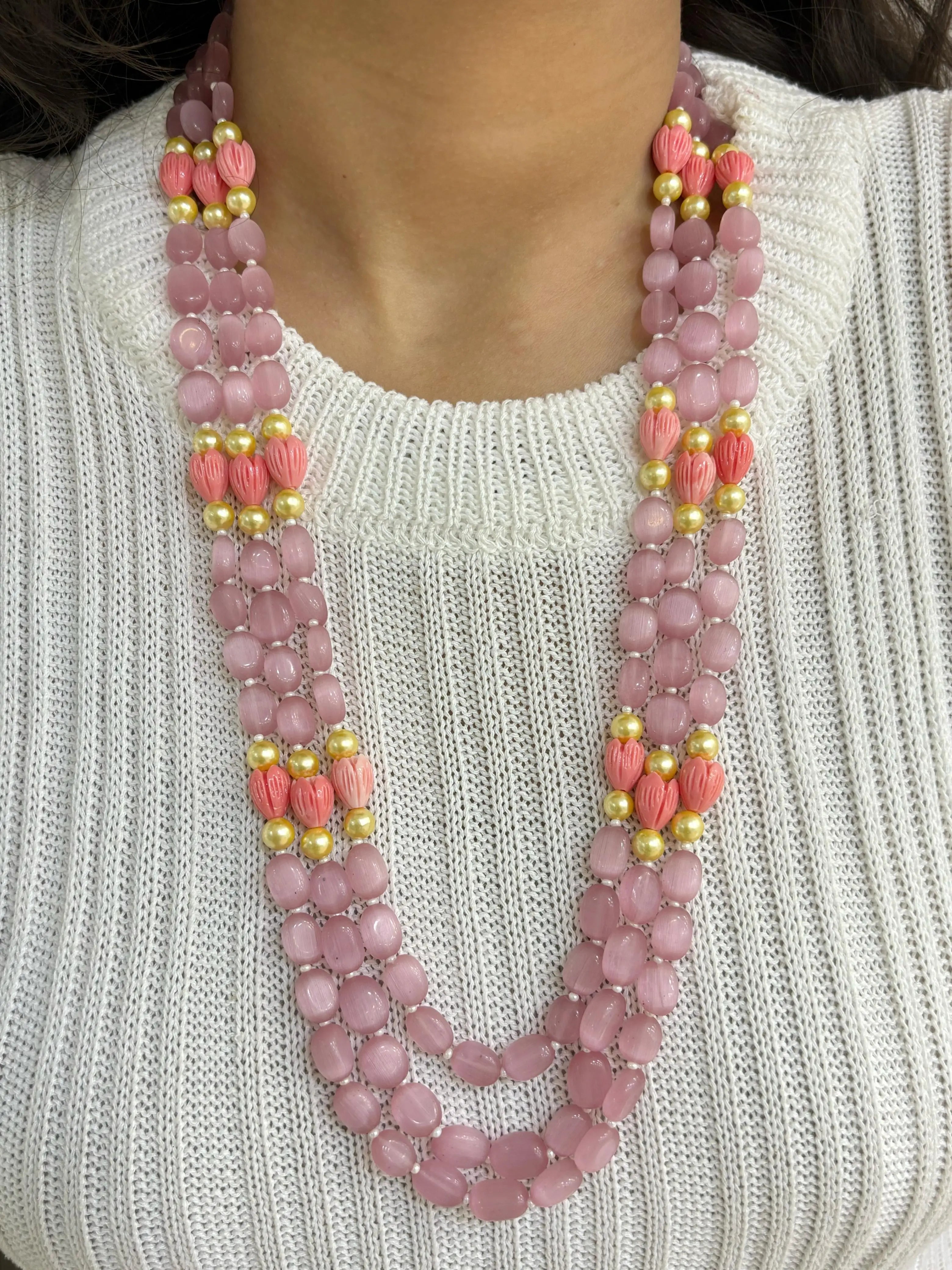 Discover the exquisite charm of our handcrafted semi-precious triple-layered Monalisa Beads Necklace Set with Tulip Flowers perfect for adding a touch of elegance to any outfit. This stunning set features a beautiful combination of Monalisa semi-precious beads and beautiful tulip flowers, meticulously crafted to create a statement piece that exudes sophistication and style.