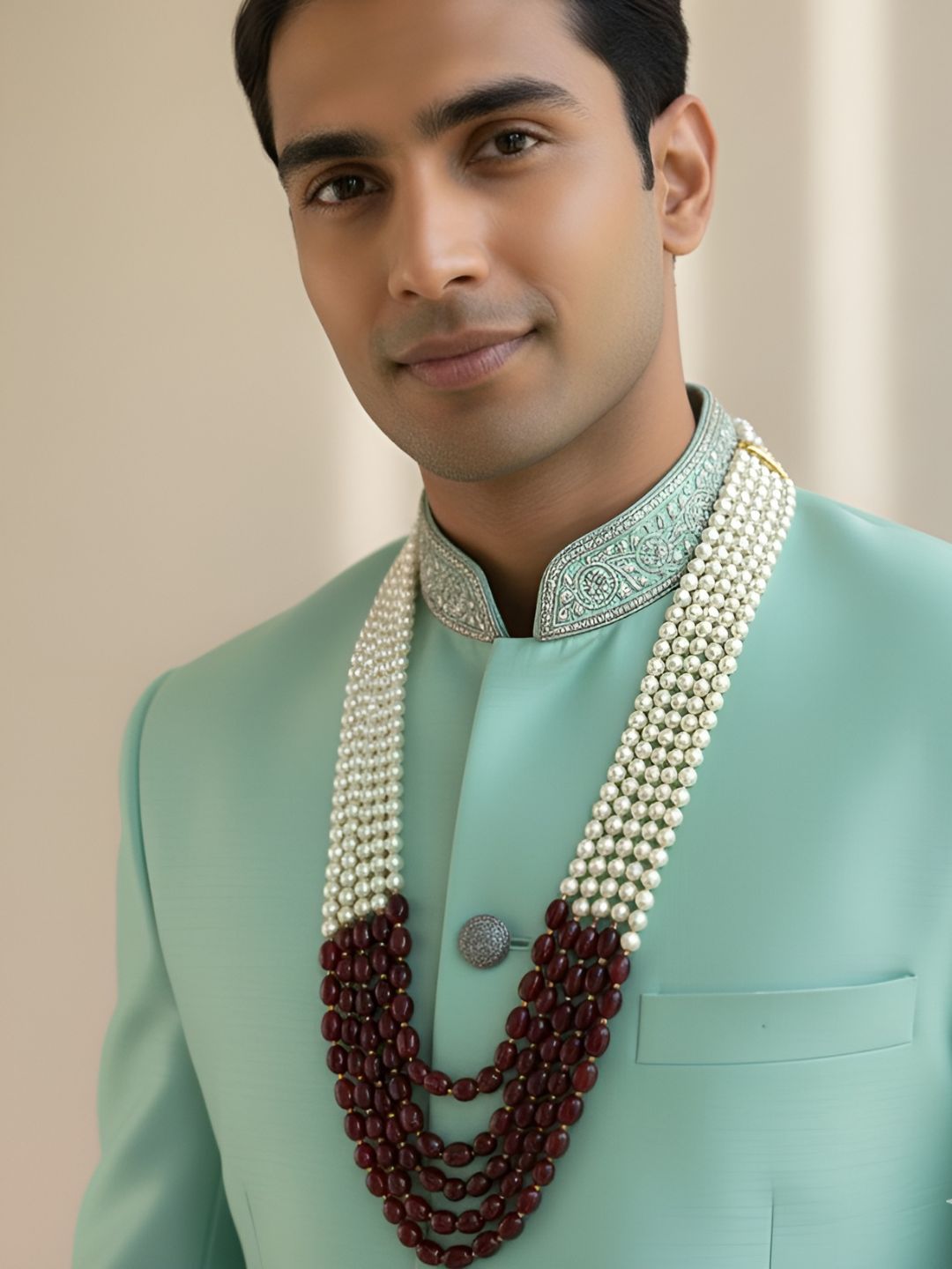 Look more classy with this Handcrafted Unisex Multilayered Long Pearls And Red Gemstone Beaded Necklace online. This designer beaded jewelry is a breathtaking blend of natural beauty and exquisite craftsmanship of semi-precious gemstones.
